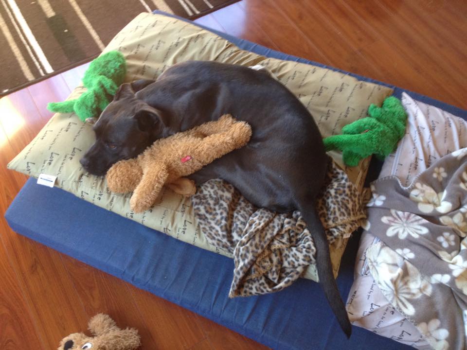 “This is Lou. She has cruciate disease and had twin TTO’s on her back legs. This means her cruciate ligaments tore. Being a larger breed she needed and extensive operation with 12-16 weeks confinement. She has monthly visits from Tanya and after these her mobility has improved. The stiffness in her hind quarters is reduced and she plays like the 5 year old she is. Prior to all the treatment she walked like a 15 year old dog. I am very impressed with her post operation treatment. She also loves the pampering!”